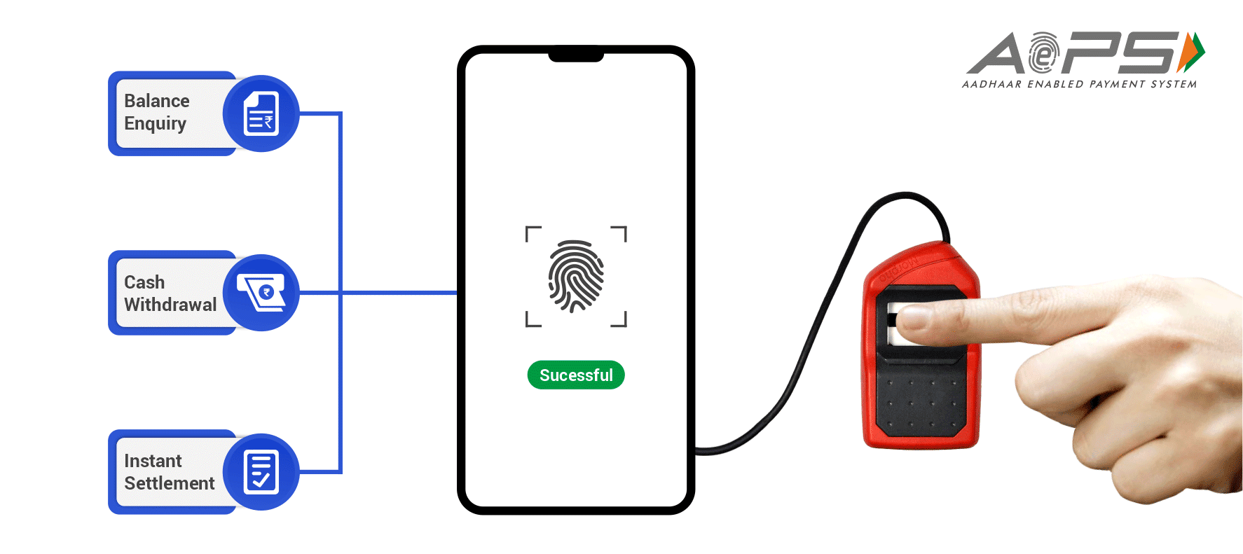 Aadhaar Enabled Payment System(AePS Service), is an Aadhaar based payment solution which empowers bank users to carry out financial transactions (without any debit card/credit card/ cheque book) using only their Aadhaar card, registered with their bank account, and biometric authentication. AePS agents and distributors can provide basic banking services to their customers such as cash withdrawal, balance inquiry and obtaining a mini statement. It is an initiative by NPCI (National Payments Corporation of India) to support unbanked and underbanked sections of India.